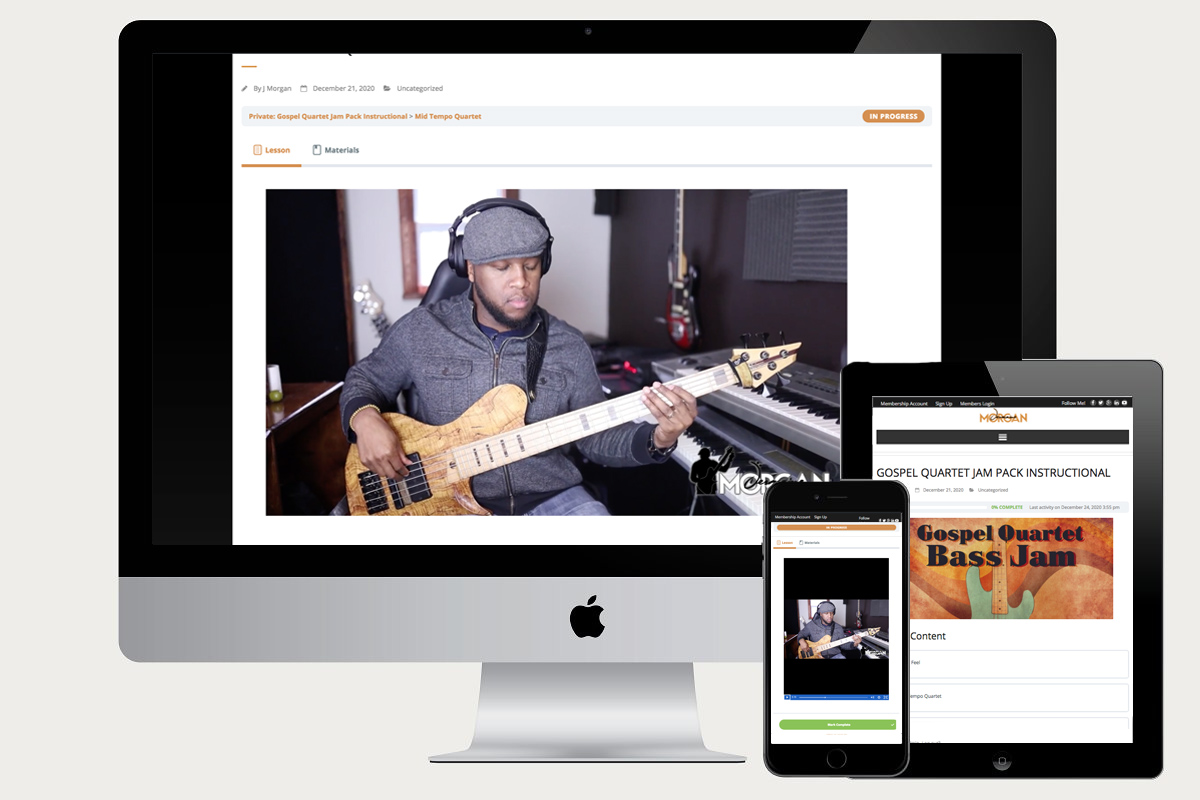 6 Authentic feeling Gospel Quartet backing tracks for your bass jamming pleasure… Use these tracks to help you get a better feel for gospel quartet music. This pack includes a total of 12 mp3 files of the songs with and without Jermaine Morgan’s bass take. Hear how he approaches these tracks, and then feel free to create your own approach. Use these tracks to enhance your YouTube, Facebook, and other platform performance videos.
